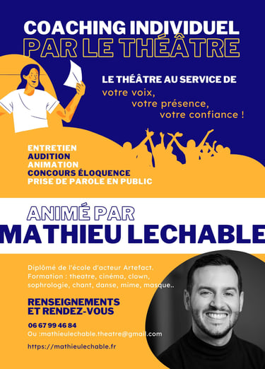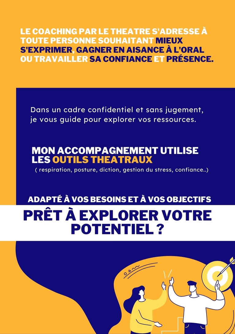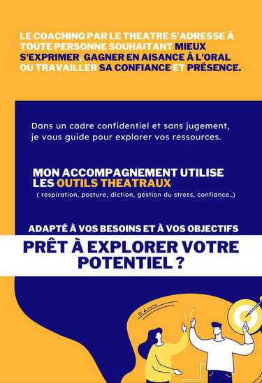 Mon coaching individuel par le théâtre s'adresse à toute personne souhaitant mieux s'exprimer, gagner en aisance à l'oral ou travailler sa présence.